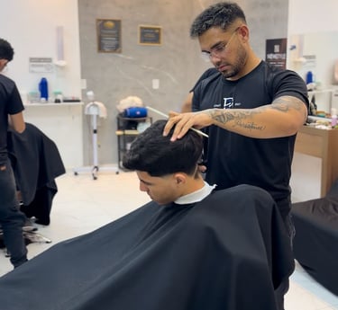 Oferecemos serviços completos para o cuidado masculino, com cortes precisos, barba bem feita e acabamento profissional, sempre focando no seu estilo e na sua identidade.